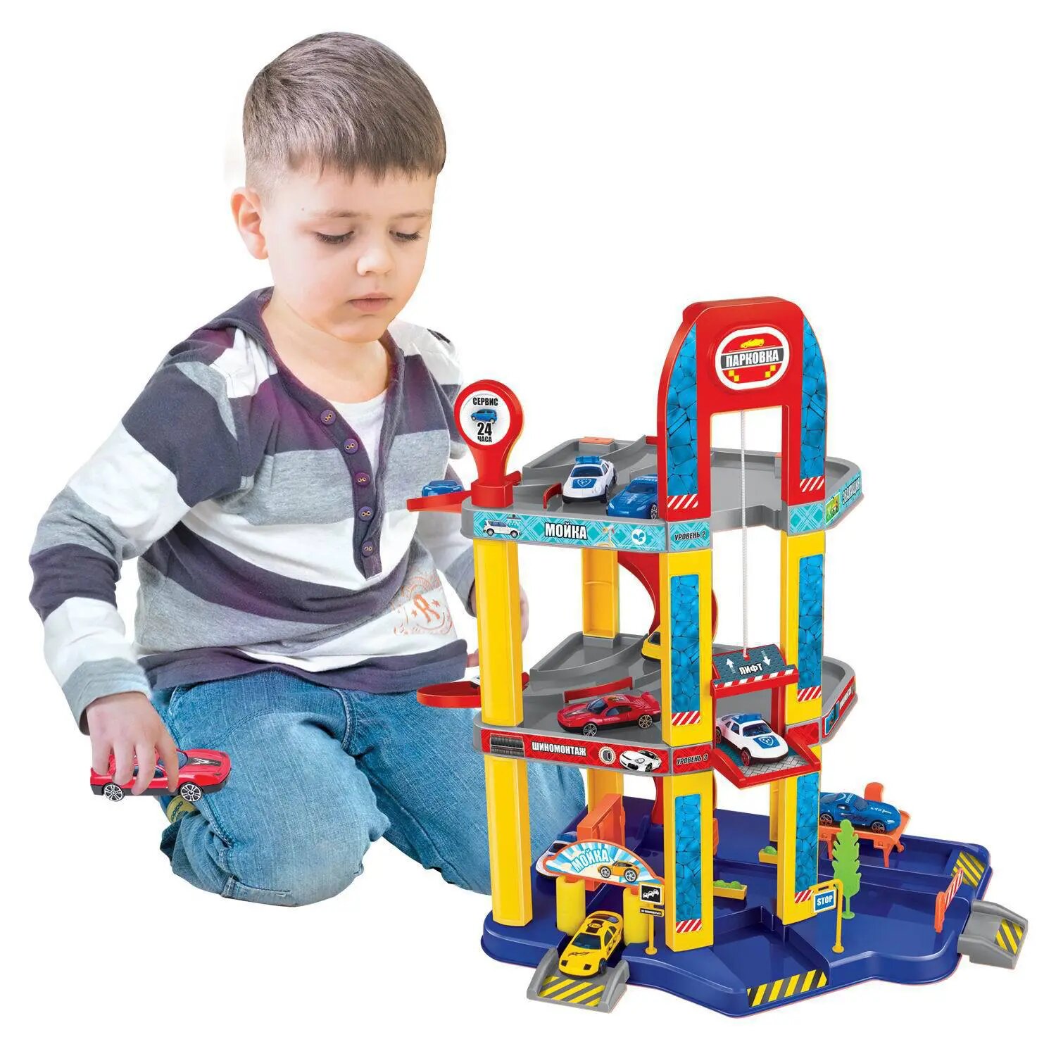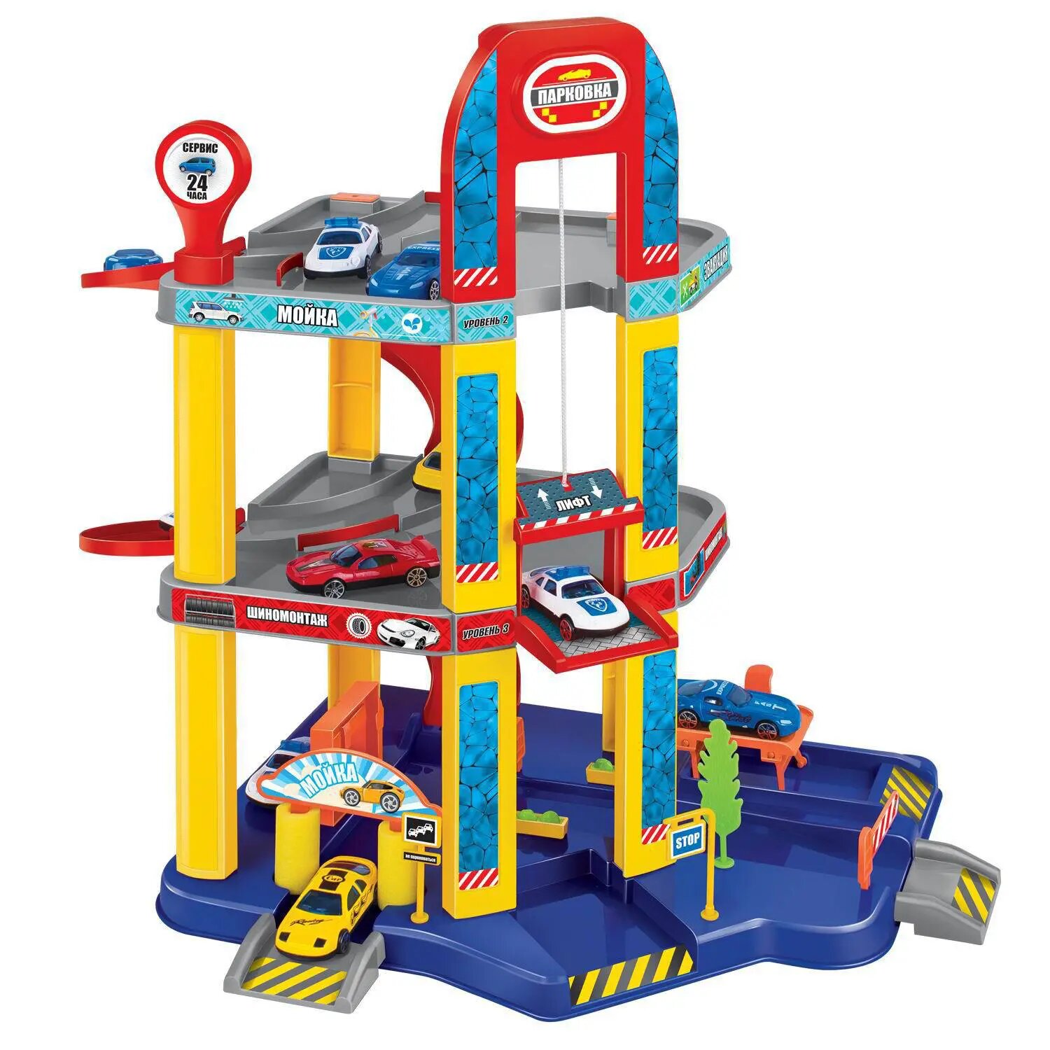 Парковка АвтоСити, 3-х уровневая с лифтом, в наборе с машинками и пр. аксессуарами