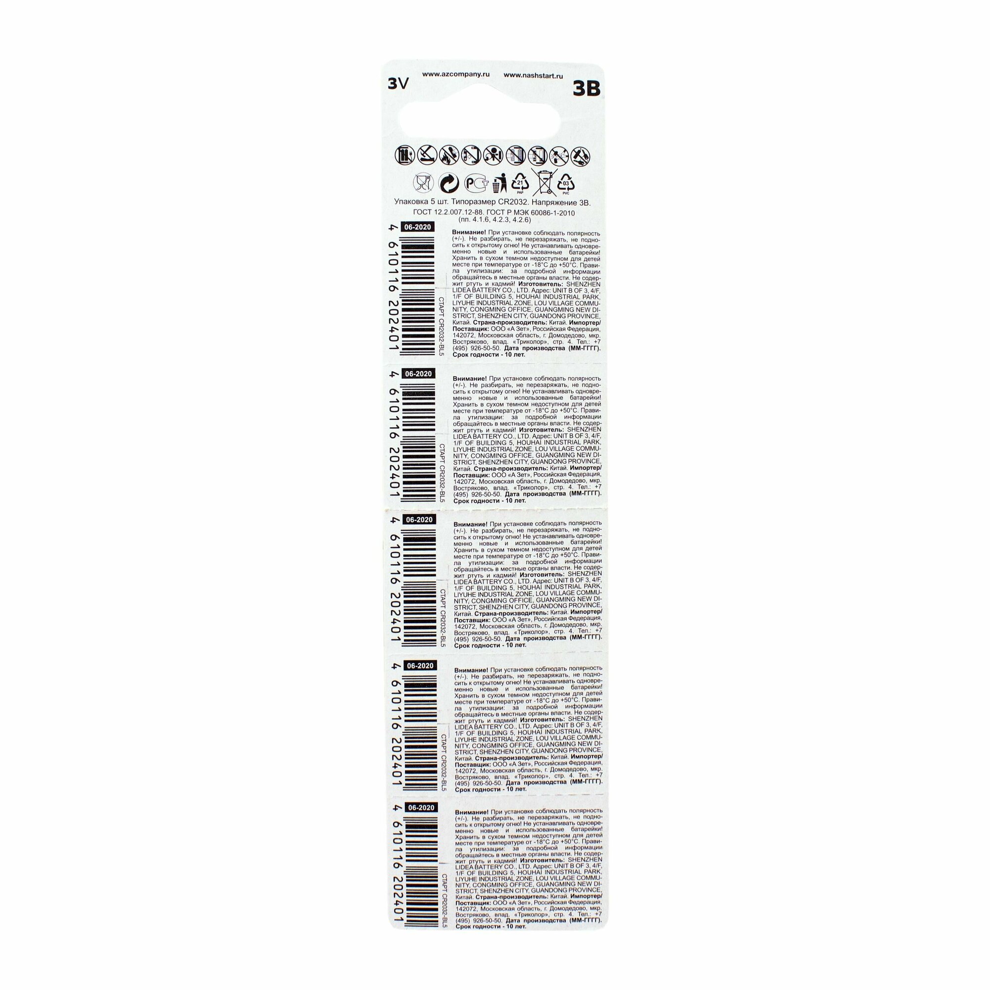 Батарейка Старт CR2032-BL5, типоразмер CR2032, 5 шт
