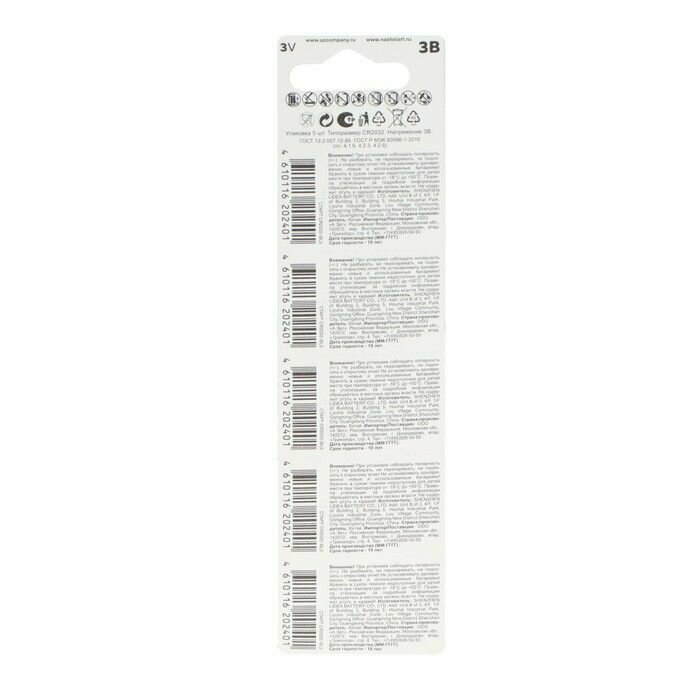 СохранитьБатарейка литиевая старт, CR2032-5BL, 3В, блистер, 5 шт. интересное: