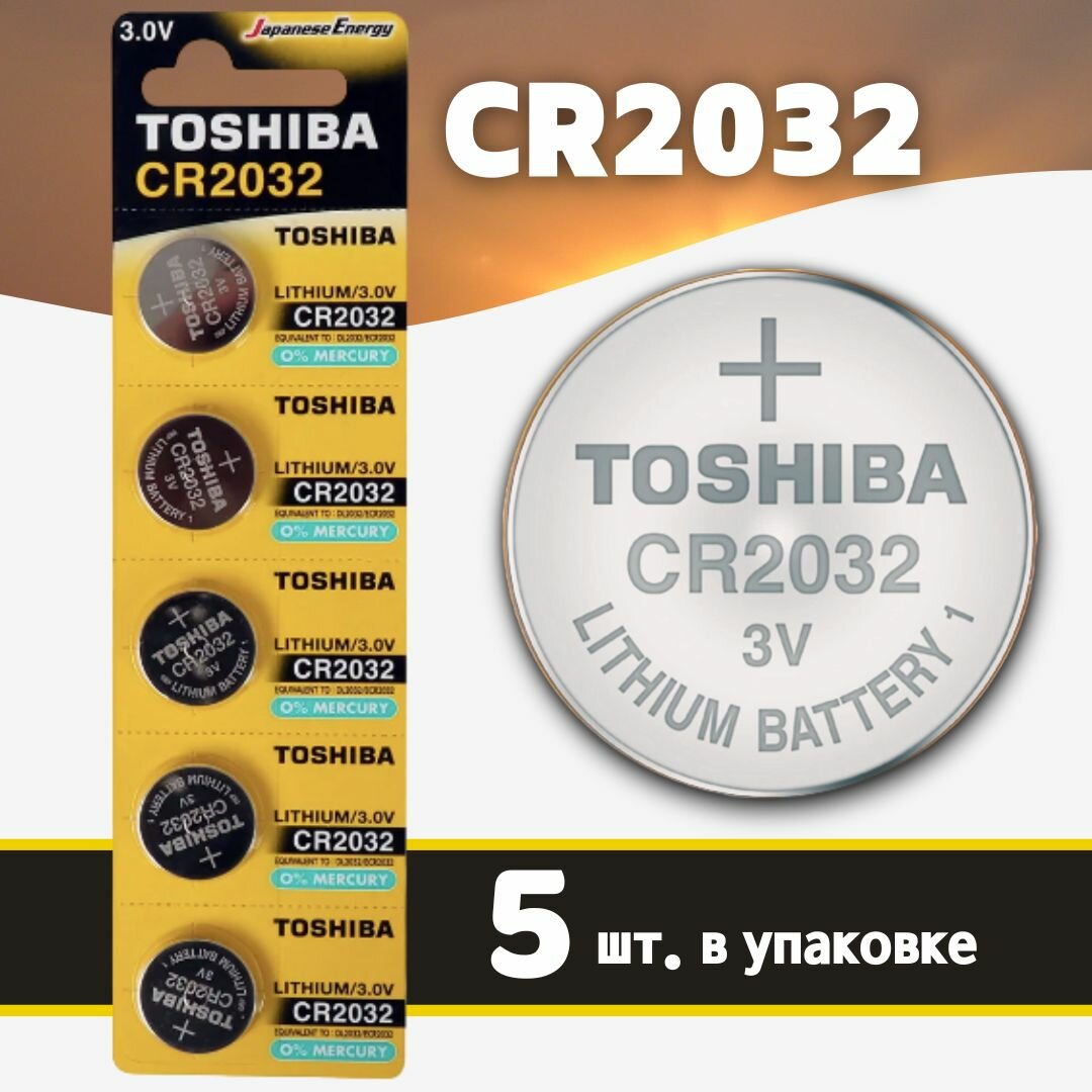 Батарейки Toshiba литиевые дисковые CR2032 / 2032, 3 В, 5 шт.