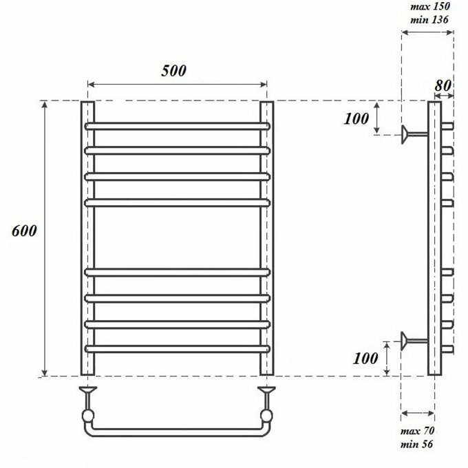 Водяной полотенцесушитель Energy Ideal 800x500