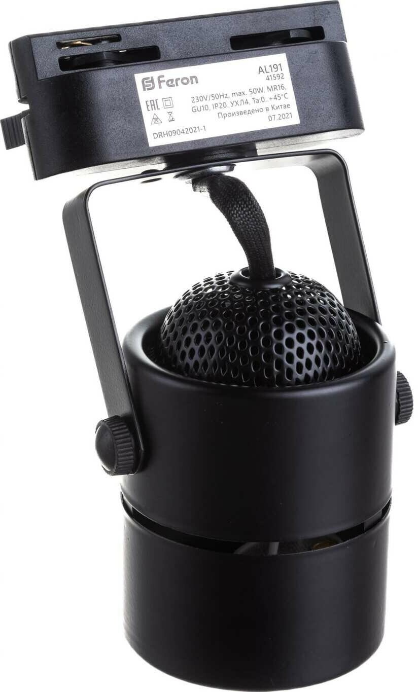 Трековый светильник Feron AL191 под лампу 50 Вт однофазный 3 м² цвет черный