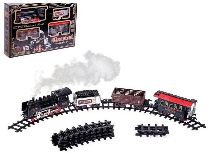 Железная дорога "Классический паровоз", 20 деталей, световые и звуковые эффекты, с дымом, работает от батареек, длина пути 420 см (1 шт.) интересное:
