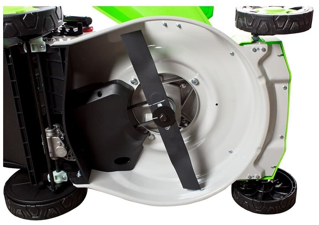 | Дополнительные функции | возможность установки мульчирующей насадки / регулировка высоты скашивания / тормоз двигателя |