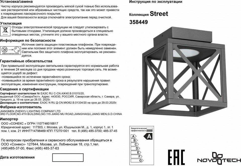 | Подробная комплектация | Уличное освещение Novotech 358449 |