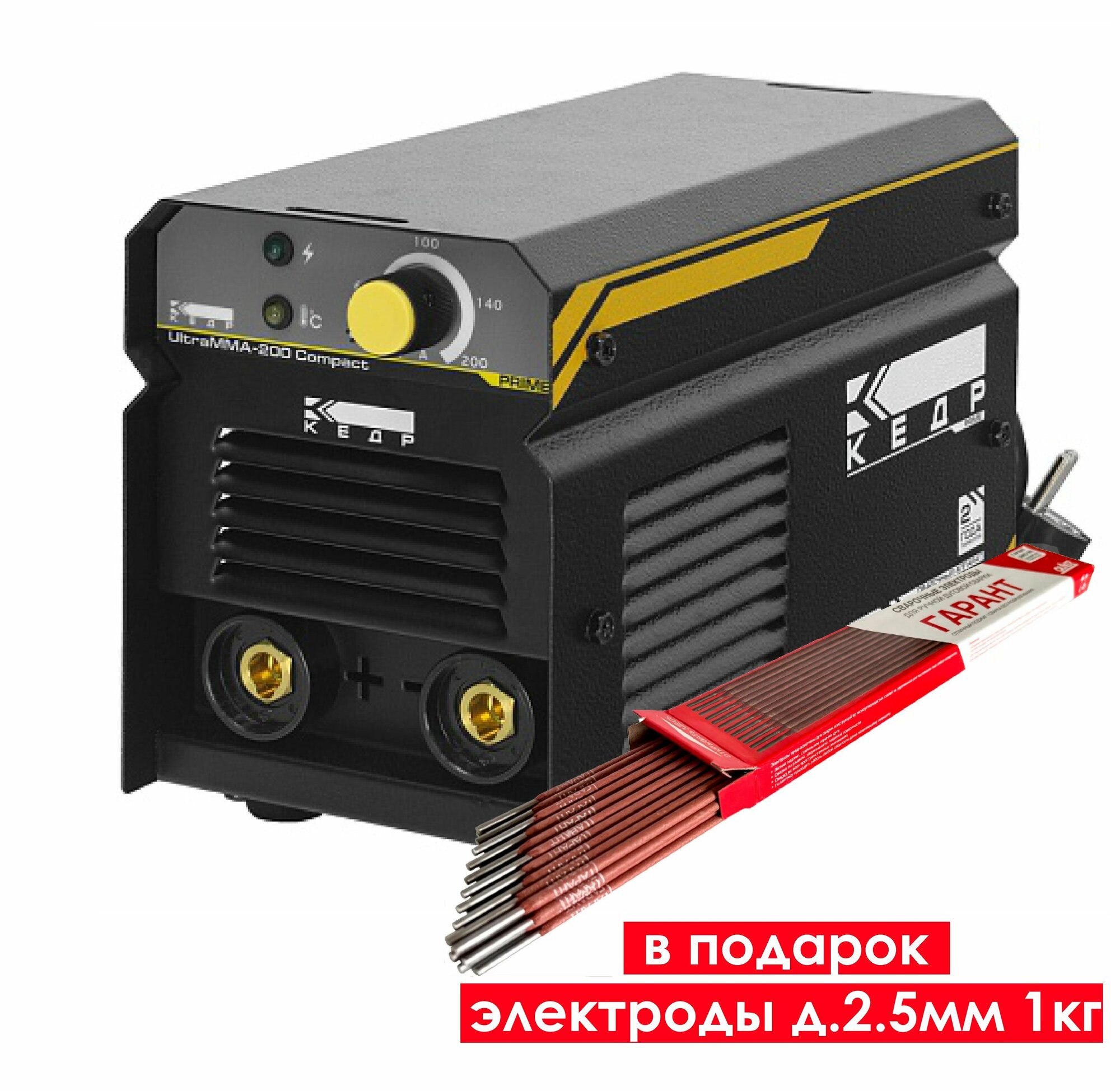 Аппарат ручной дуговой сварки ULTRAMMA-200 COMPACT (220В, 20-200А)+электроды д.2,5мм 1кг