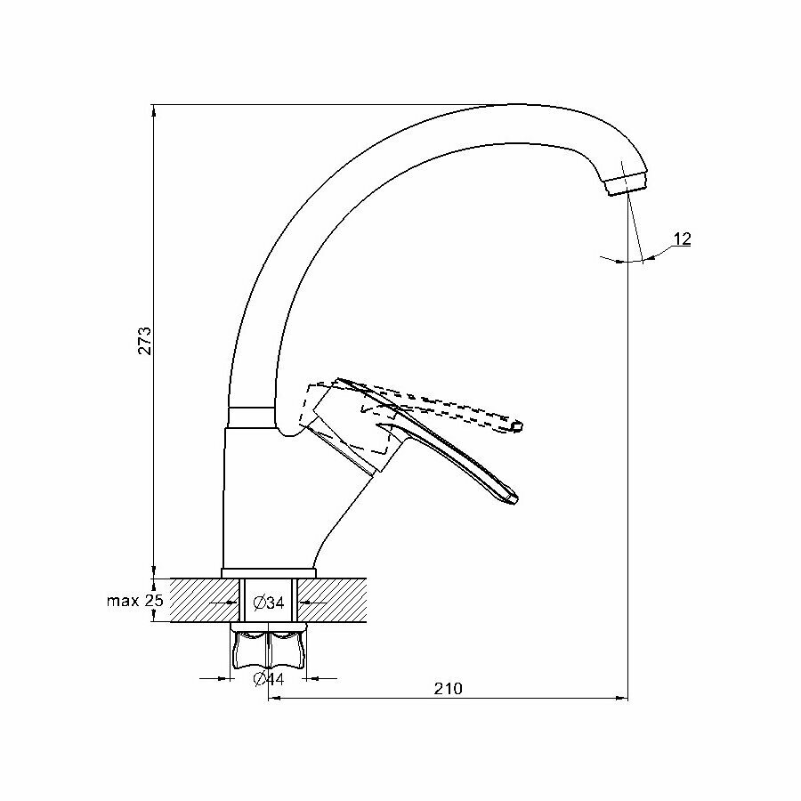 Смеситель для кухни 40к Glauf 9G4-A180 ЛАТ бок. ручка, п/гайку
