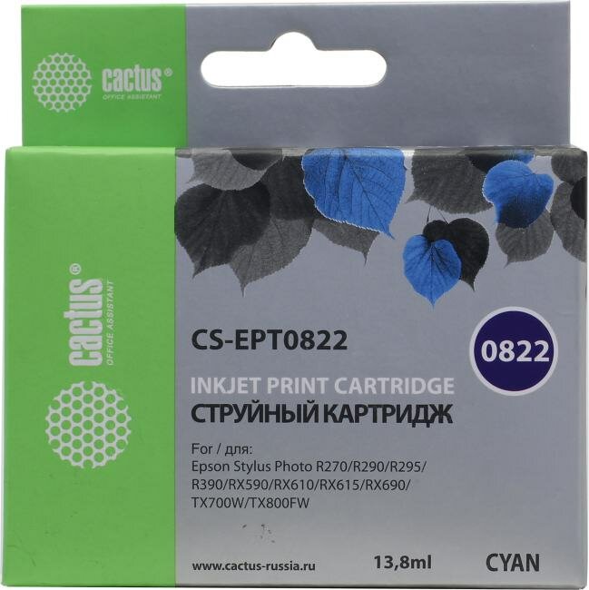 Картридж струйный CACTUS (CS-EPT0822) для EPSON Stylus R270/R390/ RX590, голубой