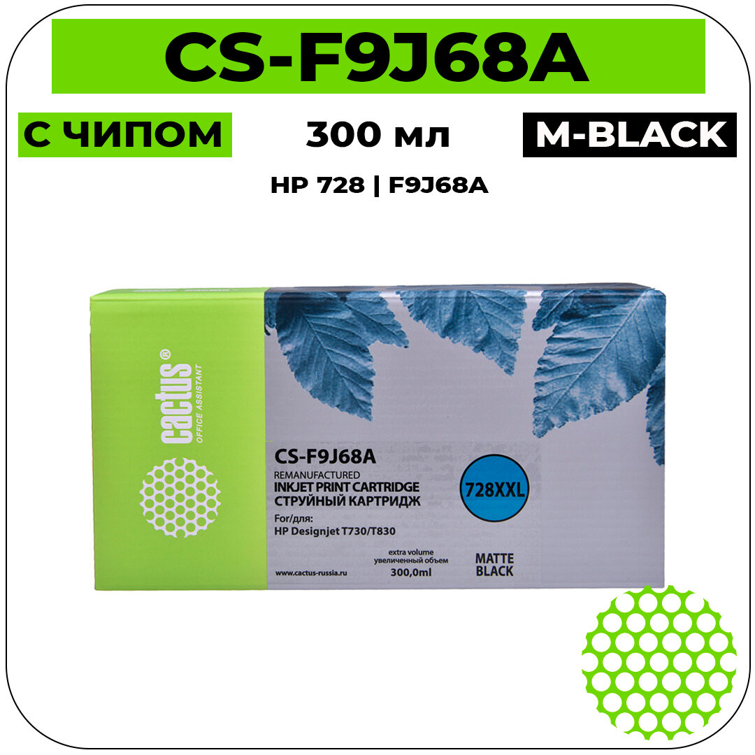 Картридж струйный Cactus CS-F9J68A 728XXL черный матовый (300мл) для HP DJ T730/T830