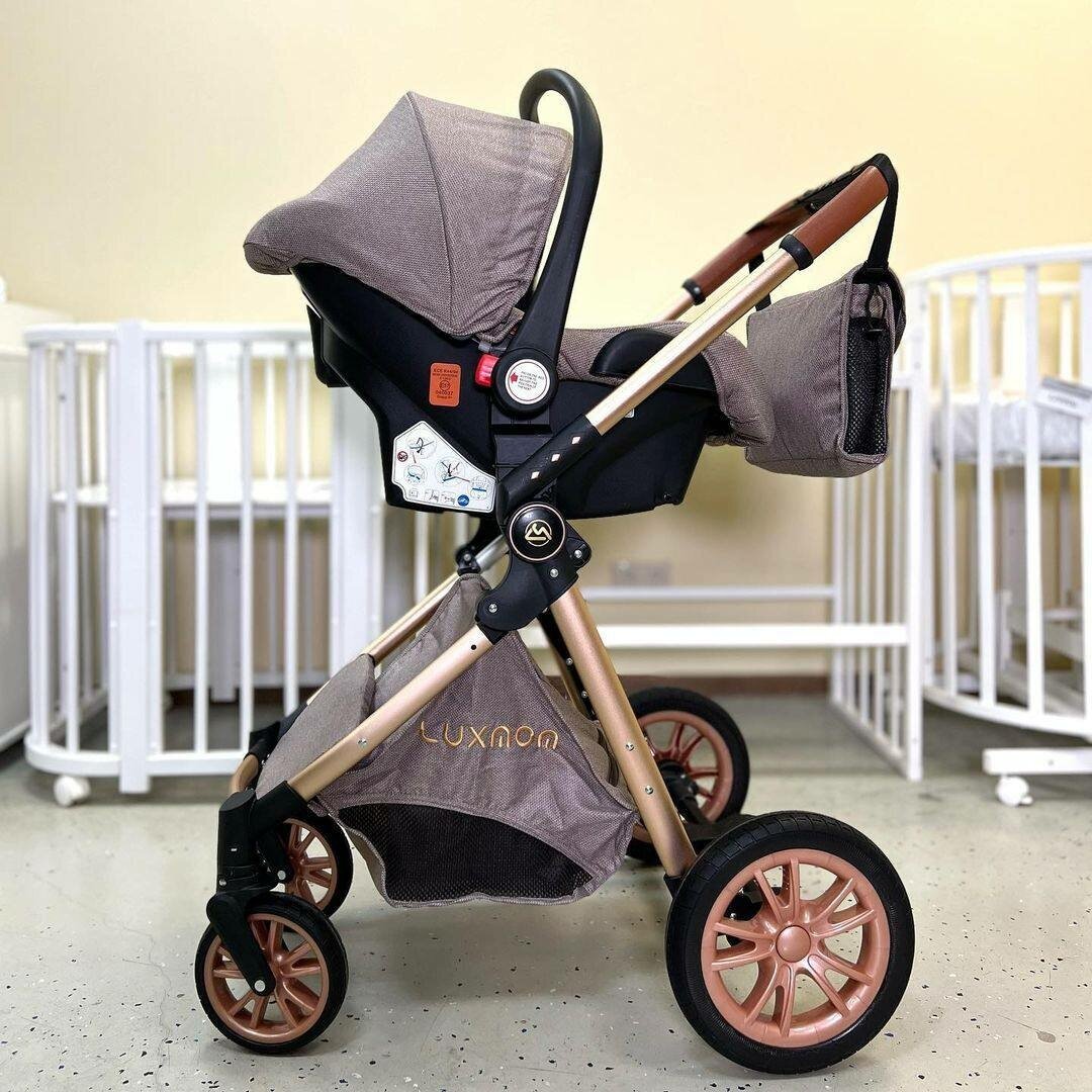 Детская коляска - трансформер Luxmom v9 3в1 коричневый, всесезонная, автолюлька