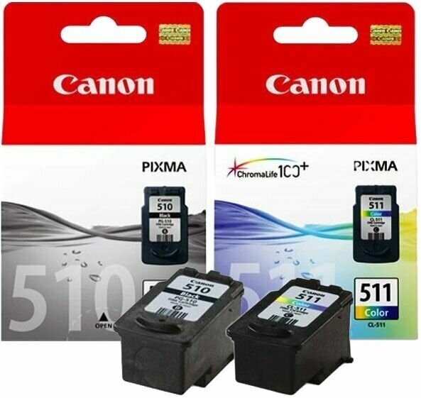 Комплект оригинальных картриджей Canon PG-510 (с черными пигментными чернилами), CL-511 (трехцветный)