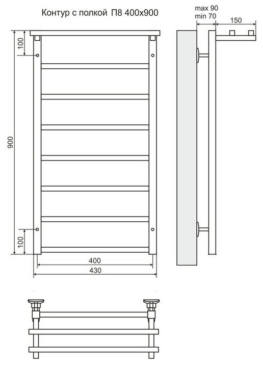 Контур с полкой Полотенцесушитель TERMINUS (474 мм / 900 мм / 400 мм)
