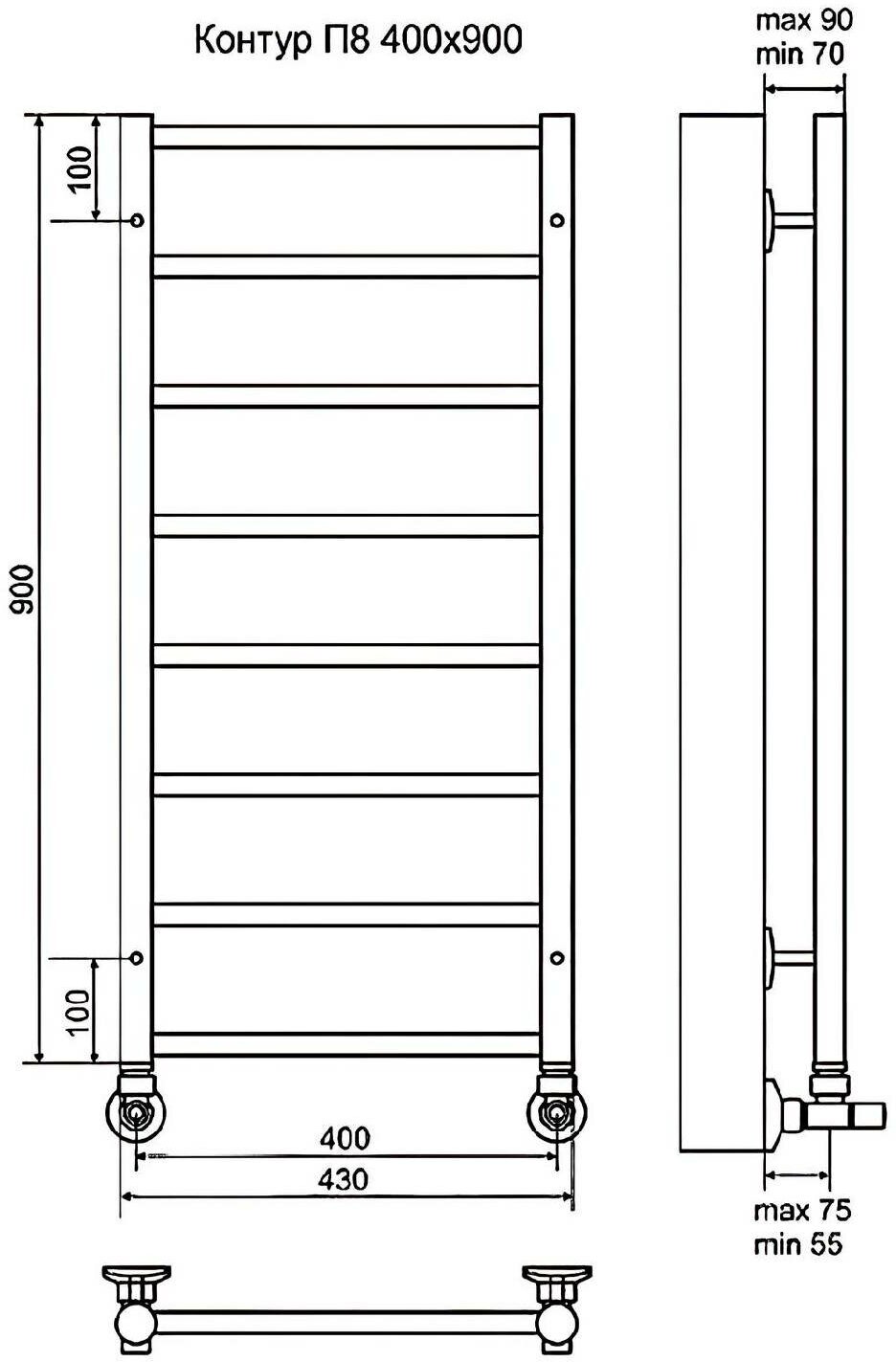 Полотенцесушитель водяной Terminus Контур П8 400*900 с полкой