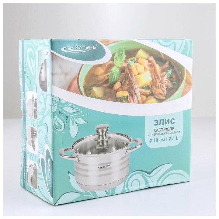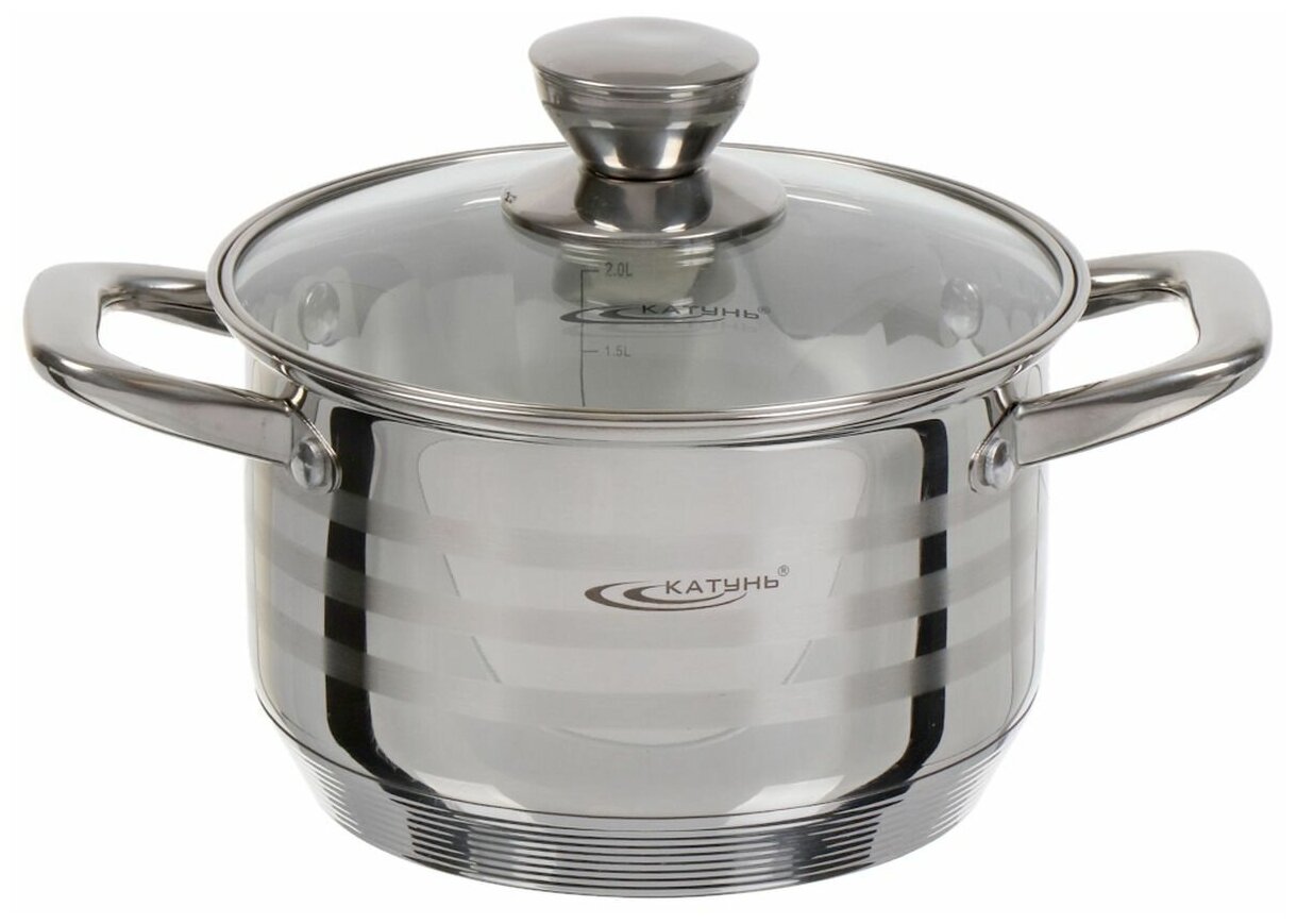Купить Катунь Кастрюля «Элис», 2,5 л, d=18 см, капсульное дно, стеклянная крышка