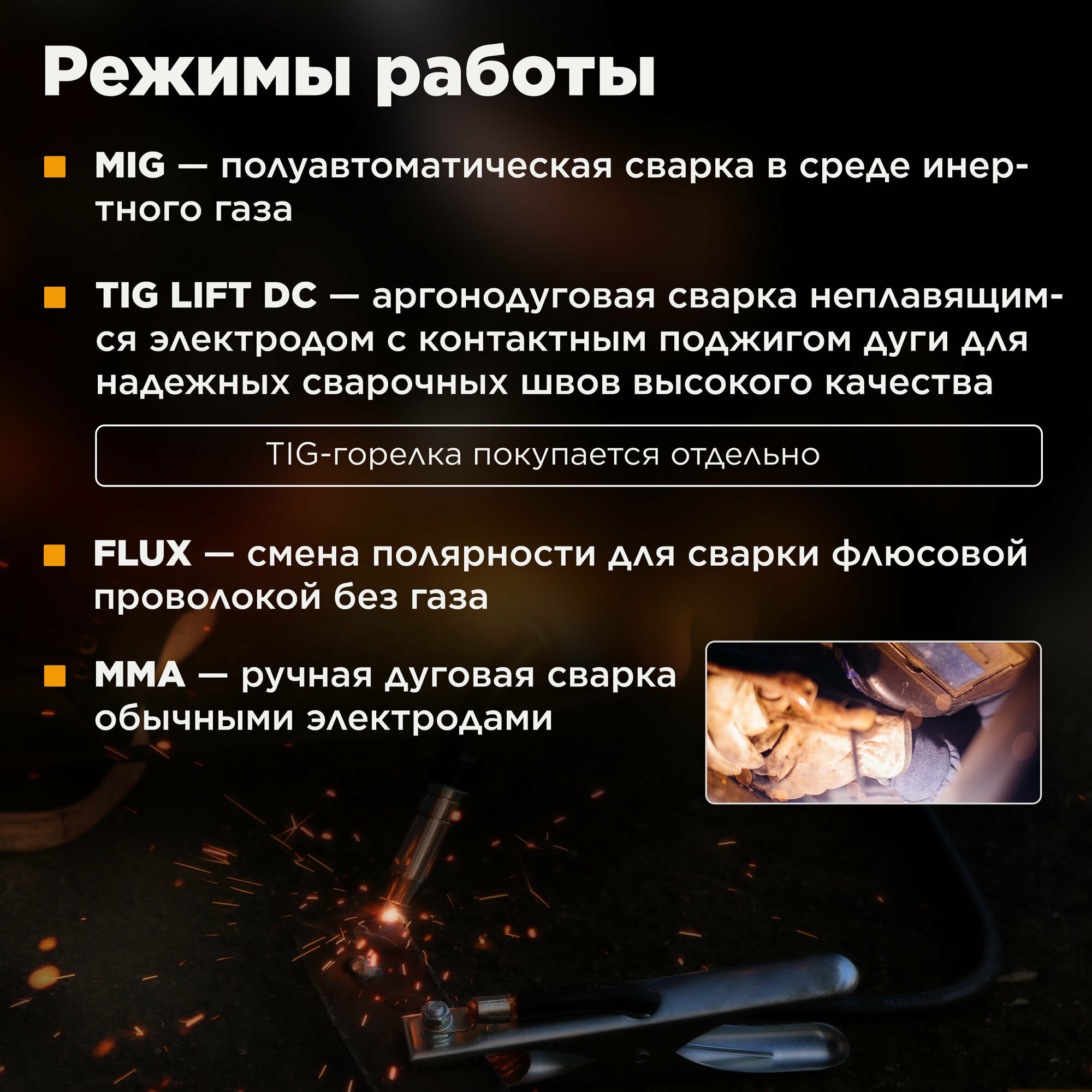 | Ручная дуговая сварка MMA | есть |