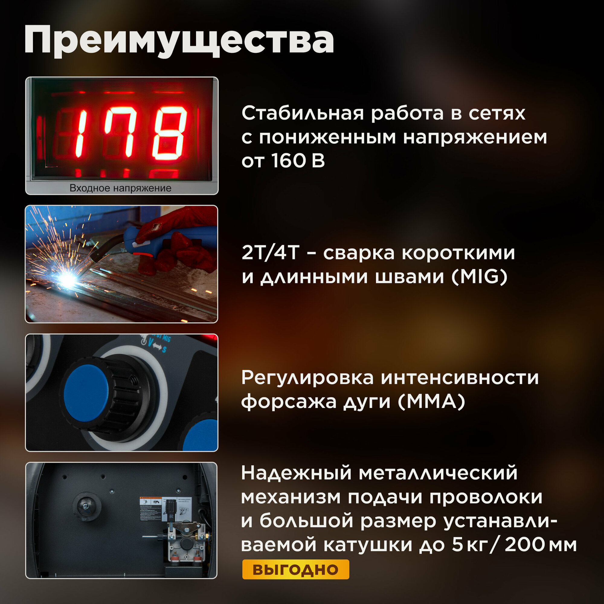 | Плюсы: | Прайс — хороший. Универсальность — разумеется присутствует, тут и полуавтомат, и ТИГ, и ММА.