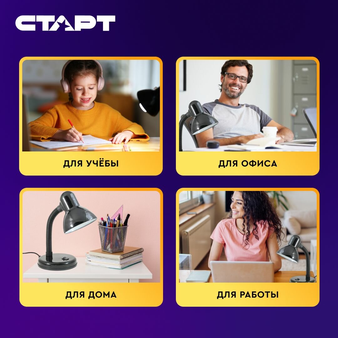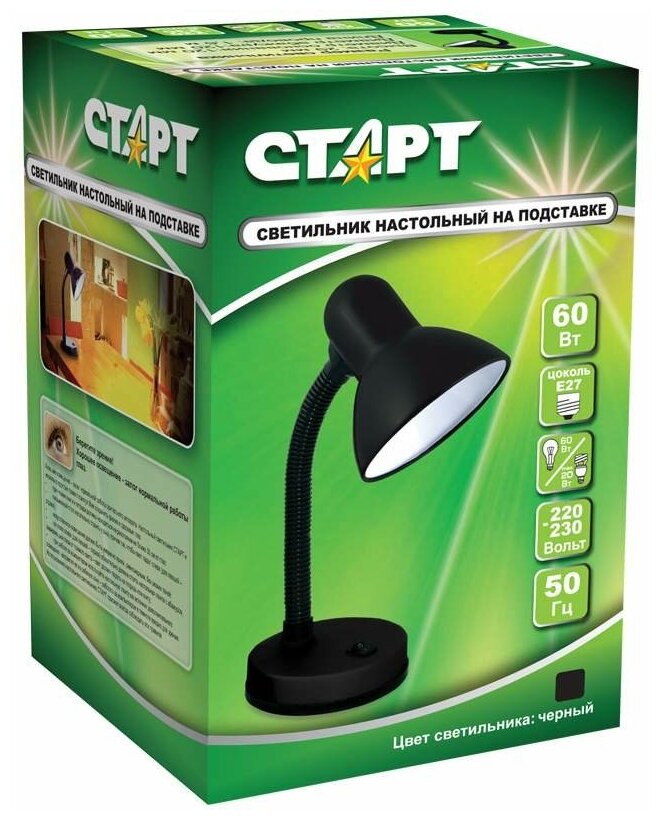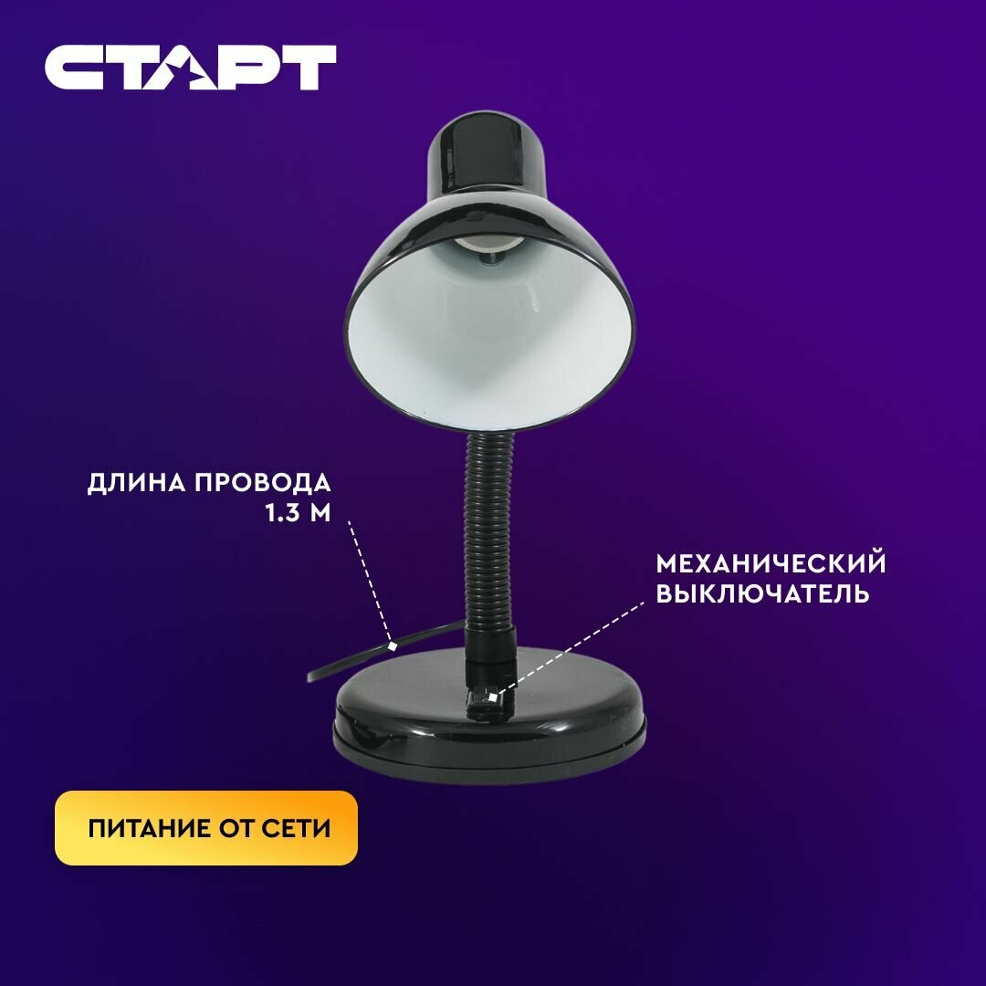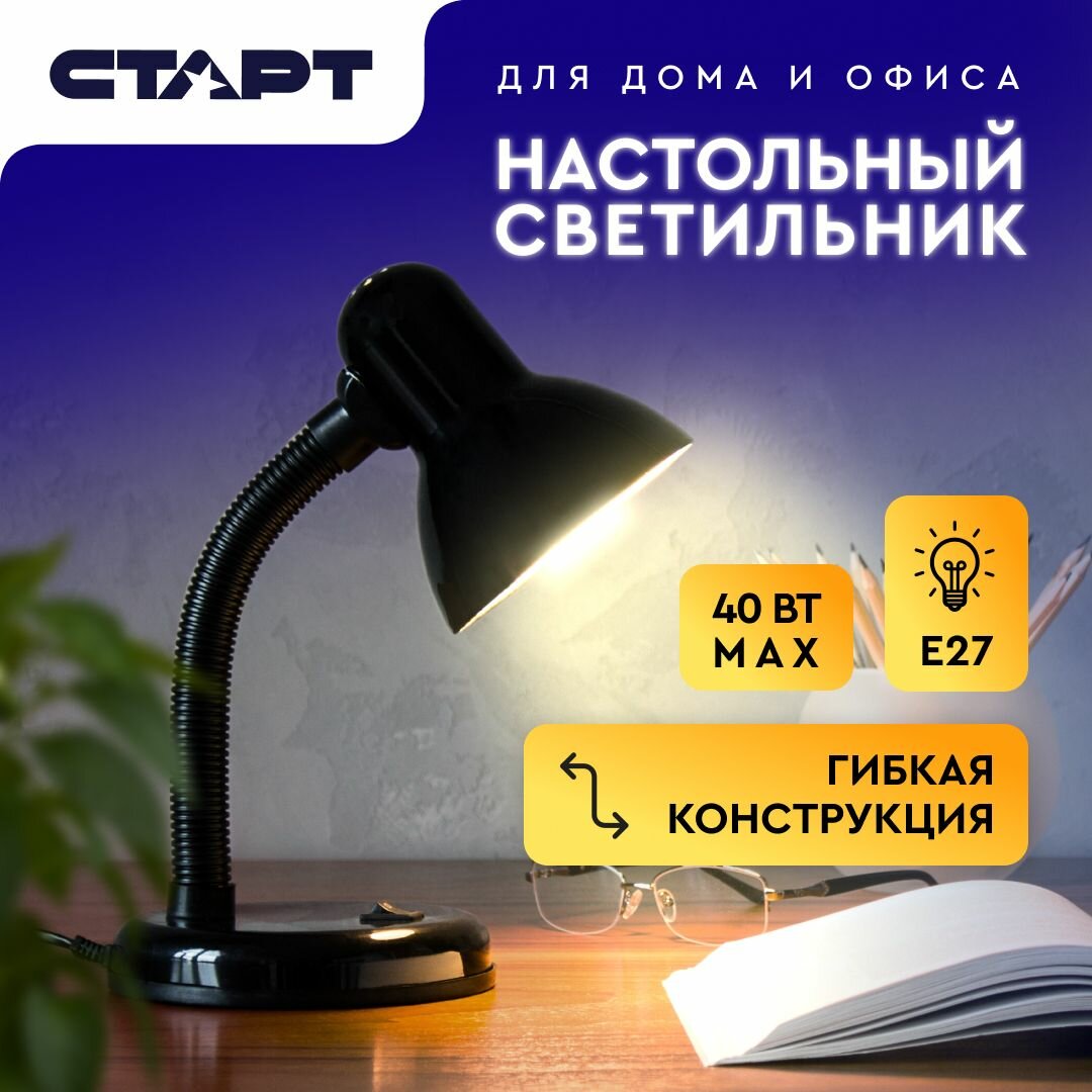Светильник настольный Старт на подставке, гибкая стойка, Е27, черный (11715/11821/12434) интересное: