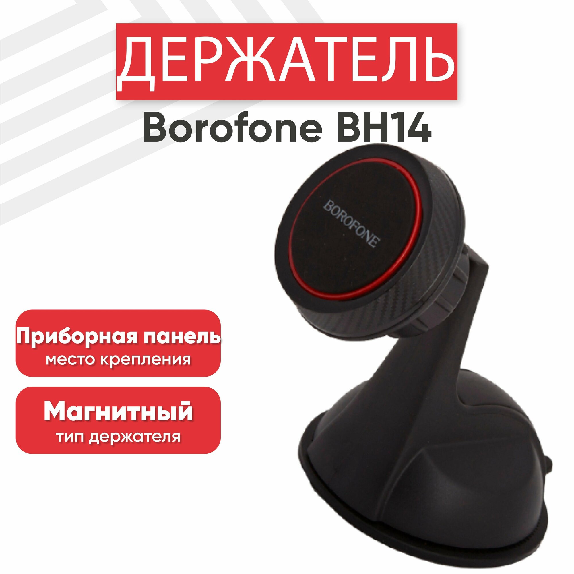 Держатель в автомобиль BOROFONE BH14 Journey магнитный, на панель (черный/красный)