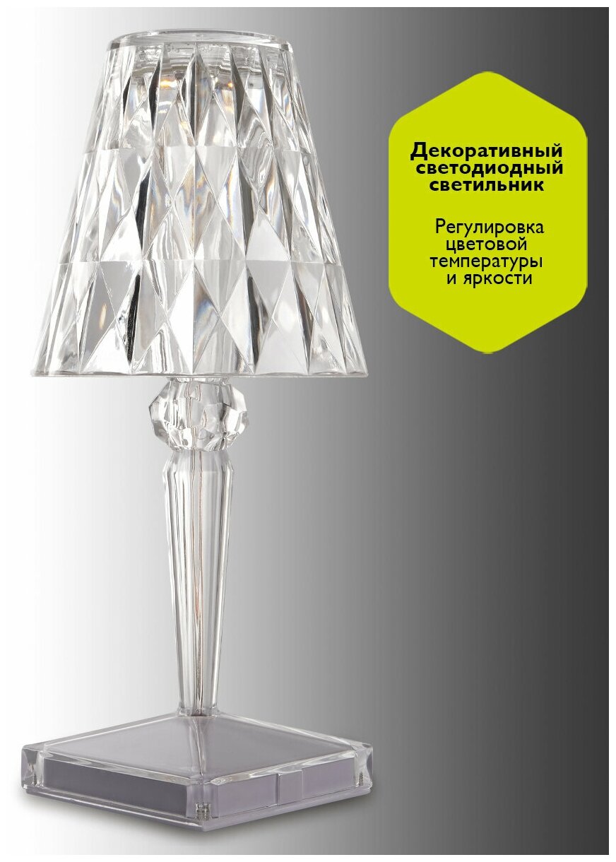 Светильник светодиодный CTL1-USB 3Вт 120лм 5В 2SMD IP20 диммер: 2700-3000К/4000-4500К/6000-6500К ночник настольный прозр. кристалл акрил