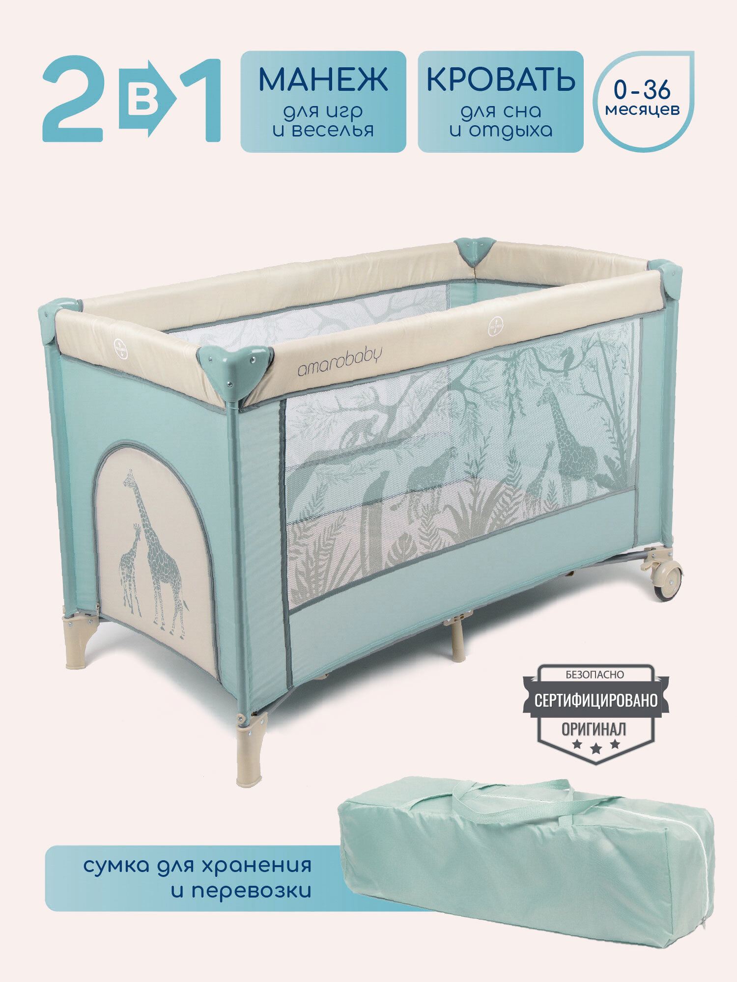 Купить Кровать-манеж Amarobaby MULTIFORM Safari зеленый (AMARO-26MSA-Ze)