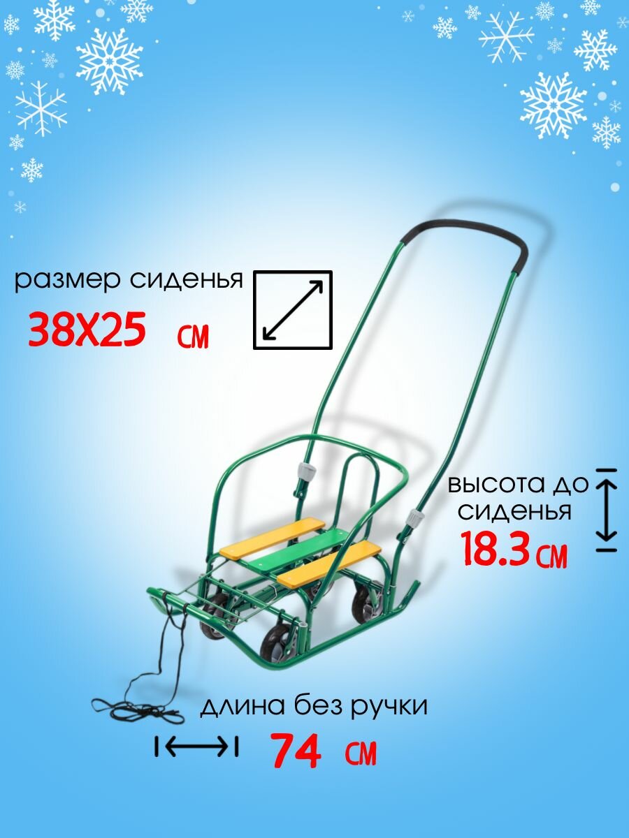 | Дополнительная информация | сиденье (ДхШ): 380х250мм, круглые полозья 20мм, высота с ручкой (на колёсах/на полозьях): 1020/960мм |