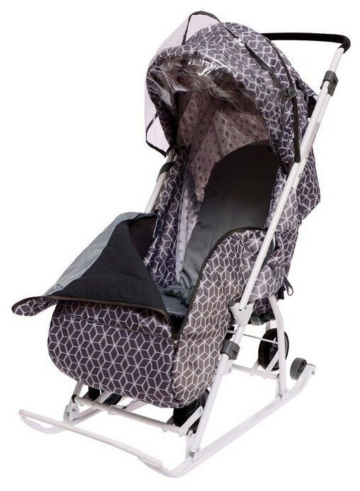 Санки коляска детские зимняя с колесами Nika"Наши детки"3-1К, Цвет: ромбики серый