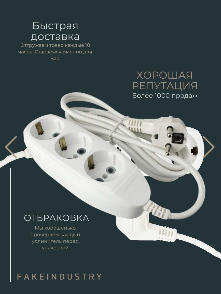 Сетевой удлинитель JETT ( джетт) РС-3 с заземлением,3 розетки,5 метров, белый