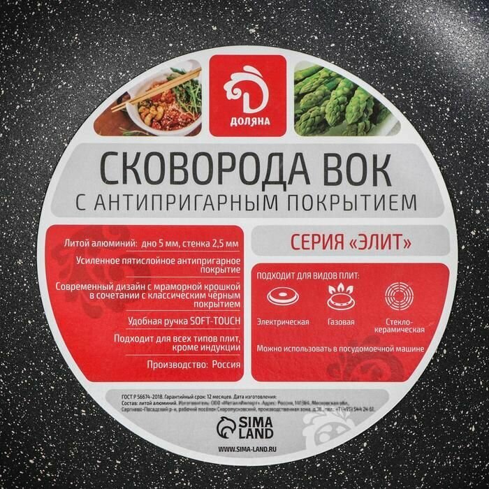 Сковорода WOK Доляна Элит, d=28 см, антипригарное покрытие, пластиковая ручка Доляна 6963993 .