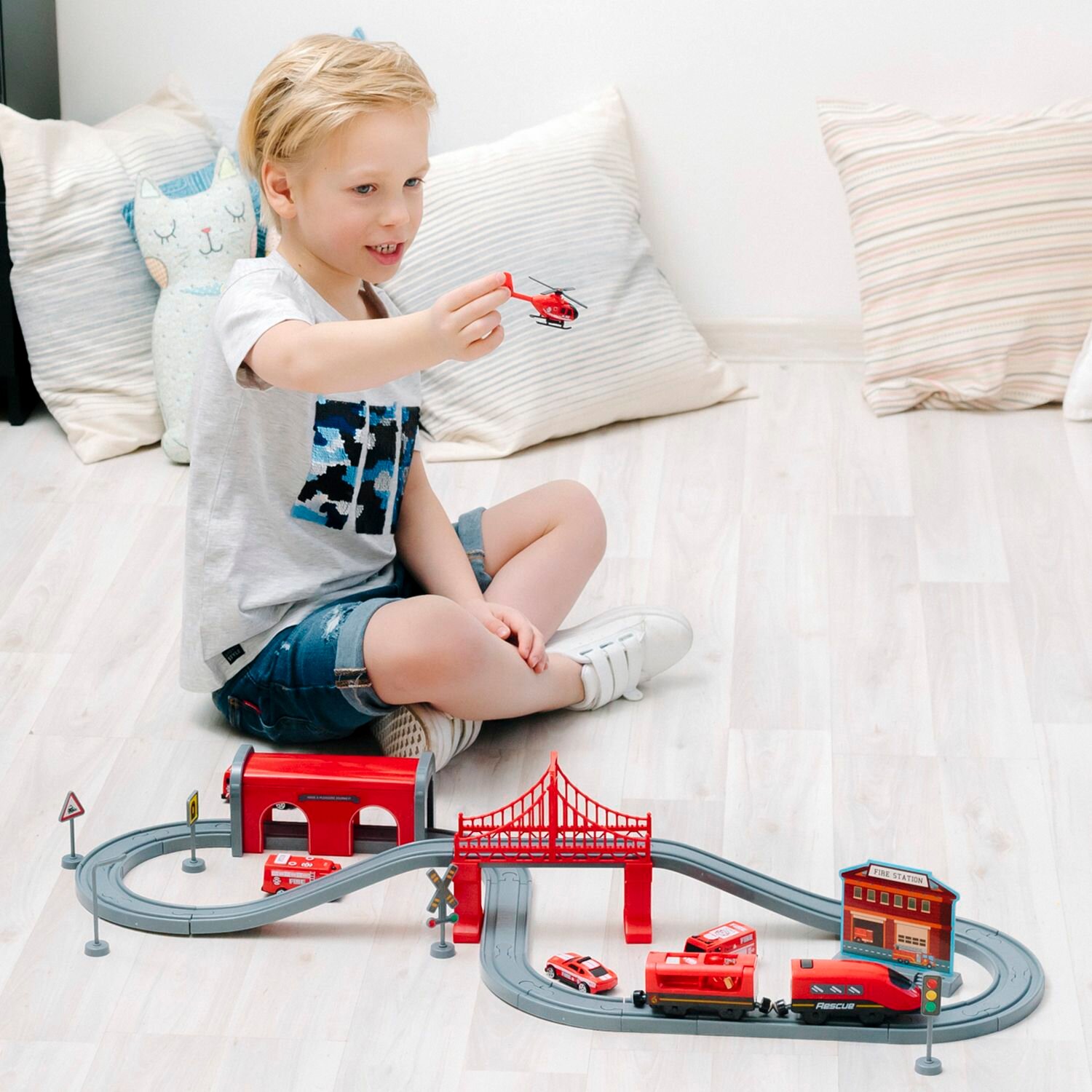 Железная дорога для детей "Служба спасения, 66 предметов", на батарейках
