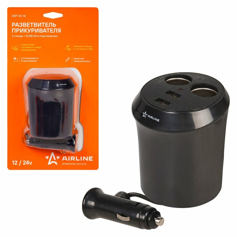 Зарядное устройство универсальное 4 USBx7.3A (2USB 1A+2.1A в прикуриватель + кабель 1.8 метра 2USBx2.1A для задних кресел) AIRLINE ACH-4U-16