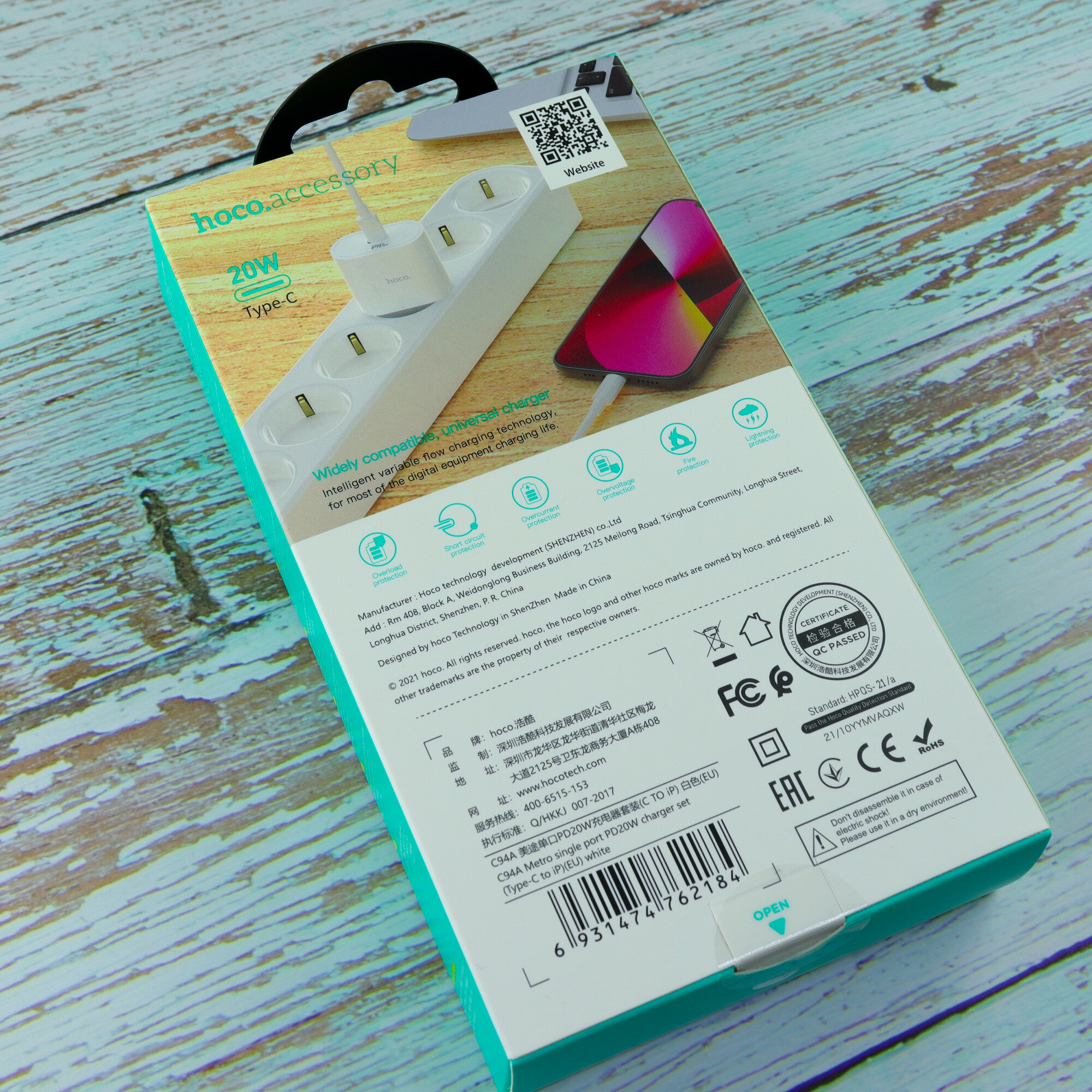 СЗУ Hoco C94A Metro 1xUSB-C, 3А, PD20W, + USB кабель Lightning 8-pin, 1м, белый