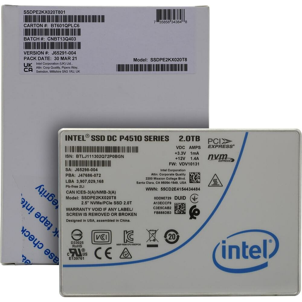 SSD диск Intel 2.5" DC P4510 2Tb PCIe 3D Nand TLC (ssdpe2kx020t801)