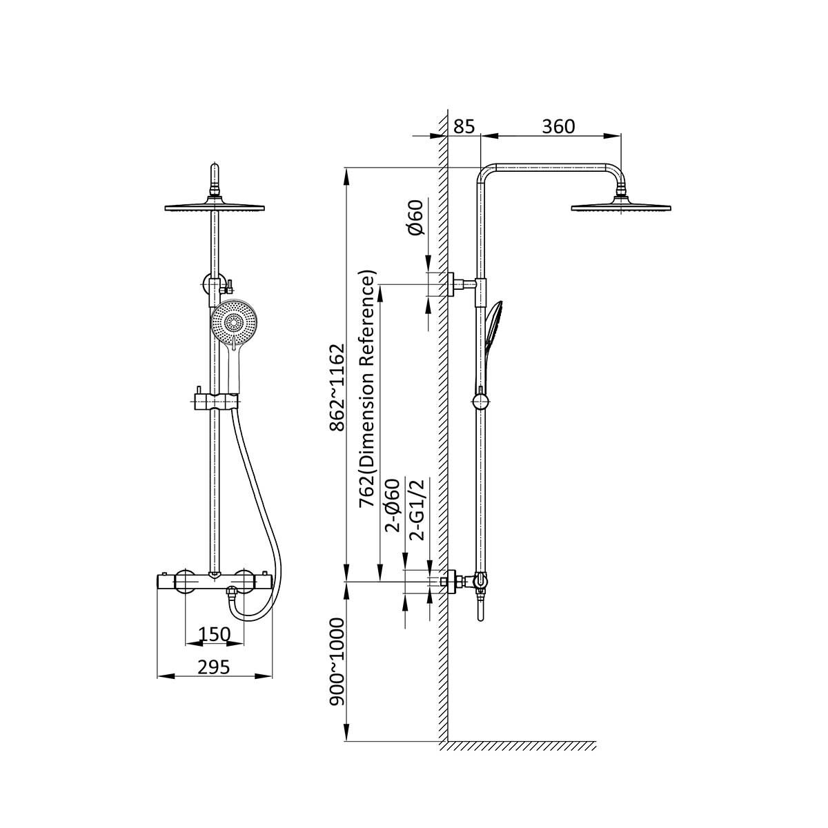 Душевая стойка Vincea Esse VSFS-1E0TMB термостатическая, черный