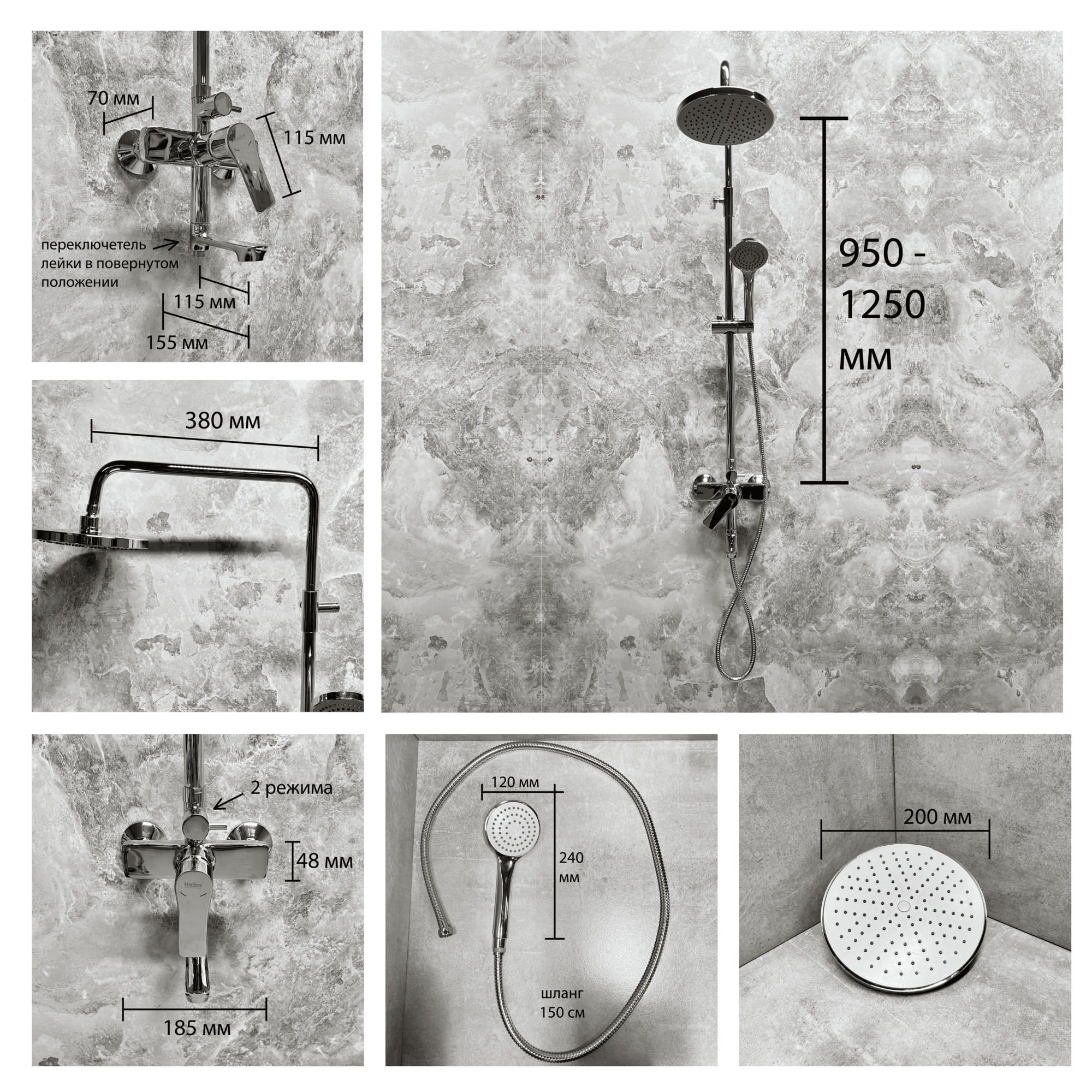 СохранитьДушевая система 200 мм Haiba HB2415 интересное: