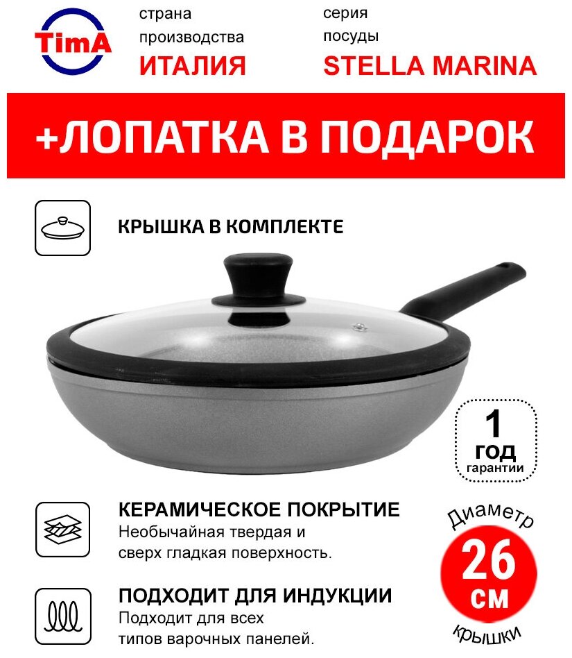 СохранитьСковорода с крышкой 26см TIMA Stella Marina Induction с керамическим покрытием EXP, Италия интересное: