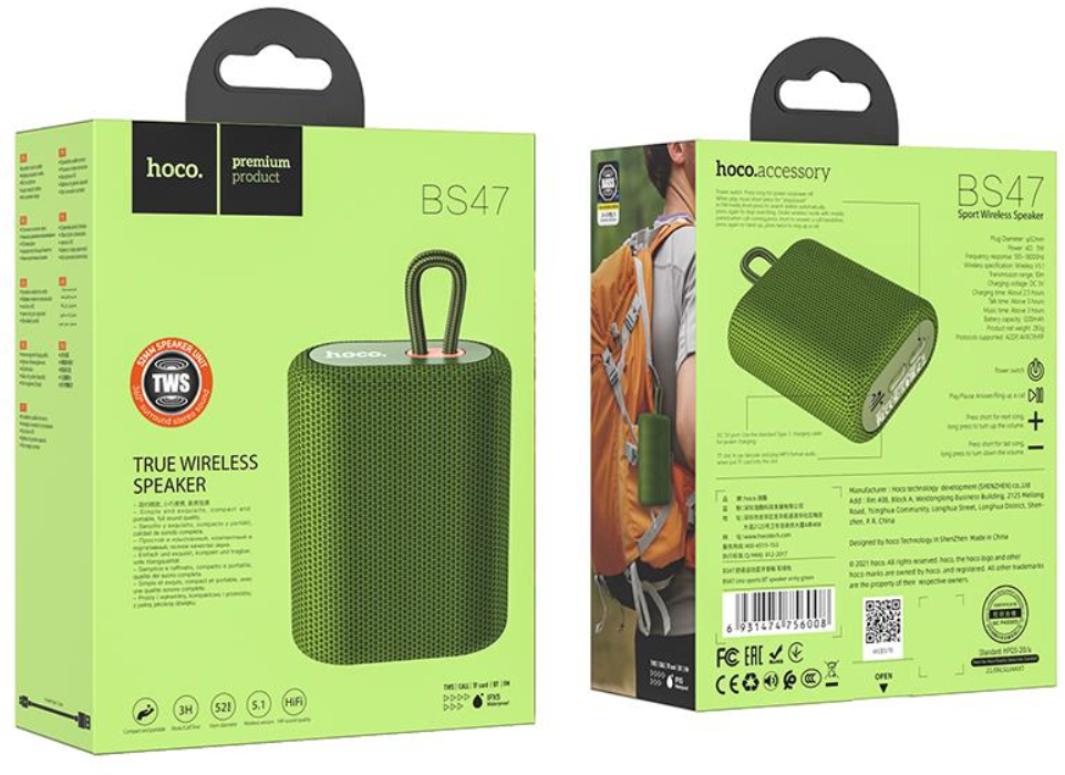Hoco портативная колонка (BS47), зеленый