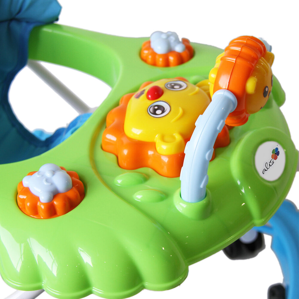 Alis Ходунки «Львенок», 8 колес, тормоз, муз., игрушки, синий-зеленый