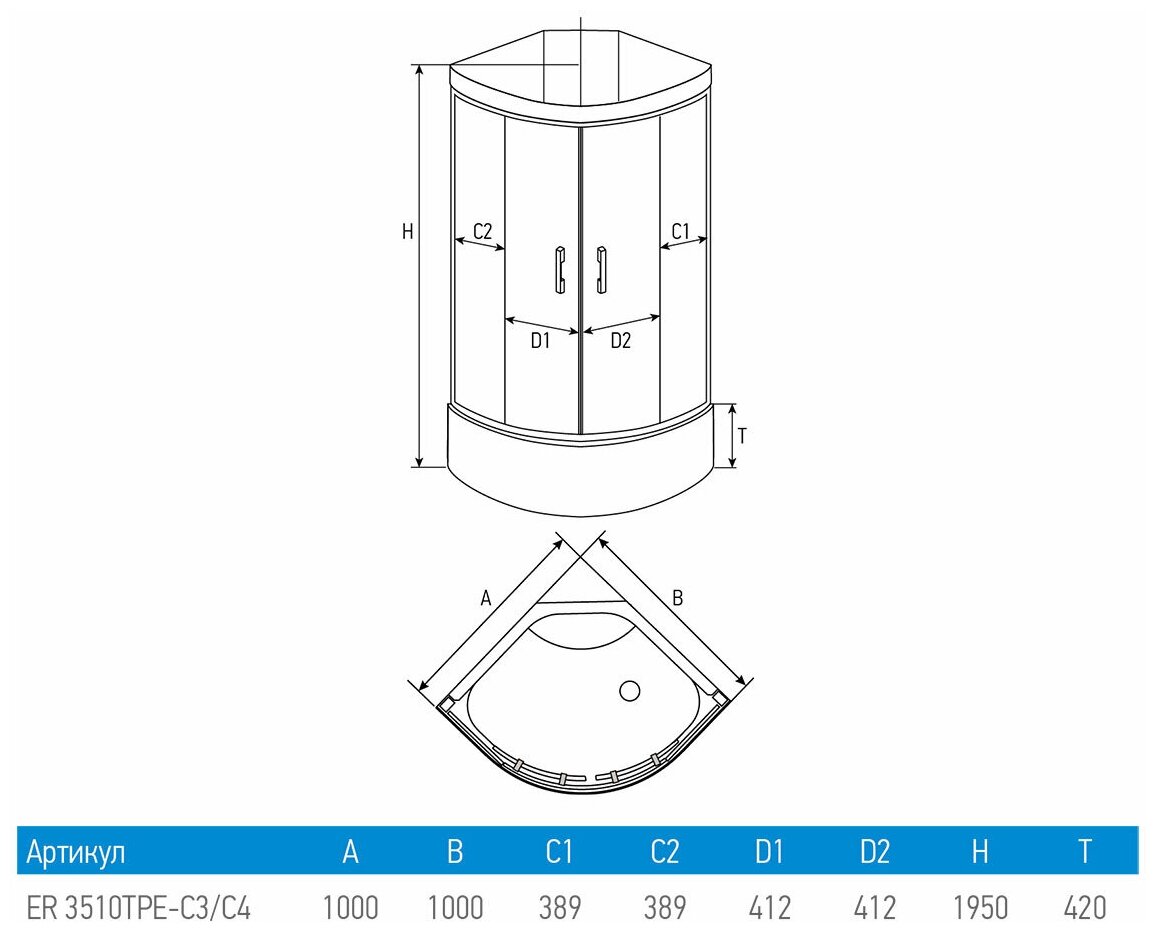Душевая кабина Erlit Comfort ER3510TP-C4-RUS (1000x1000x2150)
