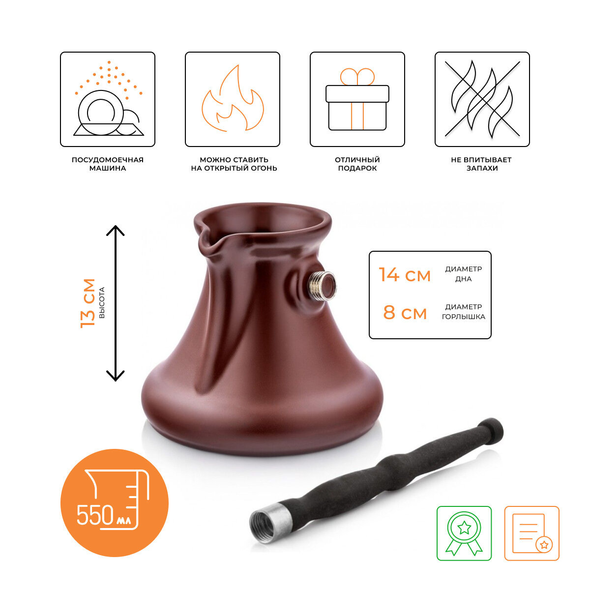 | Плюсы: | Керамическая турка подходит для индукционной варочной панели. Очень качественная. |