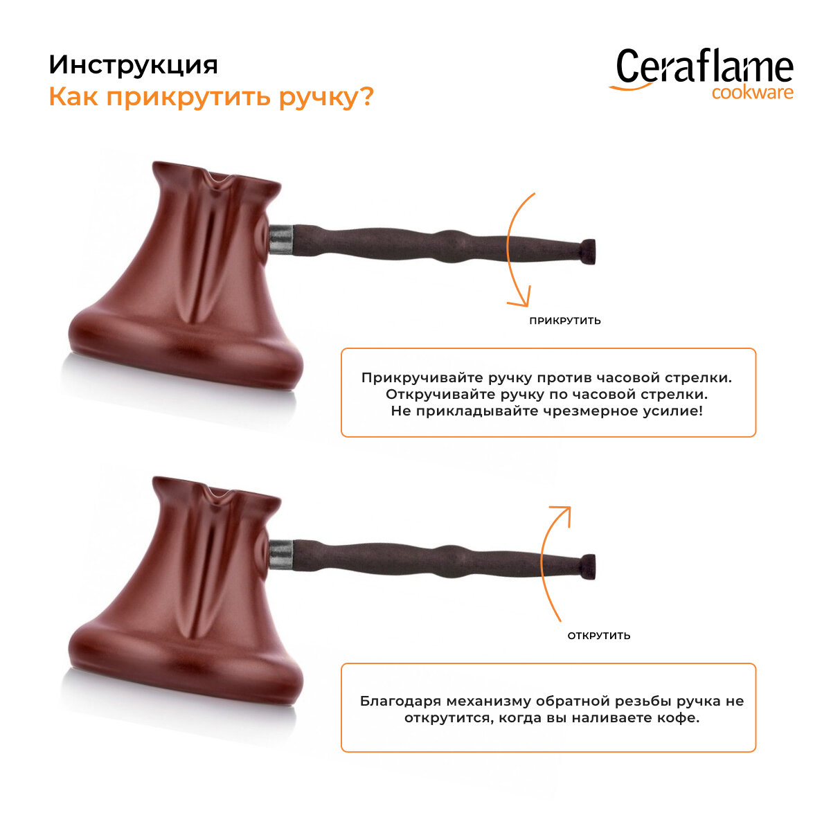 Есть ошибка в дизайне, а именно в месте крепления ручки. Все дело в том, что накручивающаяся часть имеет резьбу длиннее, чем выступающая часть, и получается, когда до упора закручиваешь ручку, ты упираешься в керамику и отрываешь с помощью резьбы выступающую часть... Получается своеобразный рычаг, который и выдирает эту пимпочку от турки, ну или делает трещину, уверен все закручивают до упора, что логично, но увы, это и отламывает ручку. |