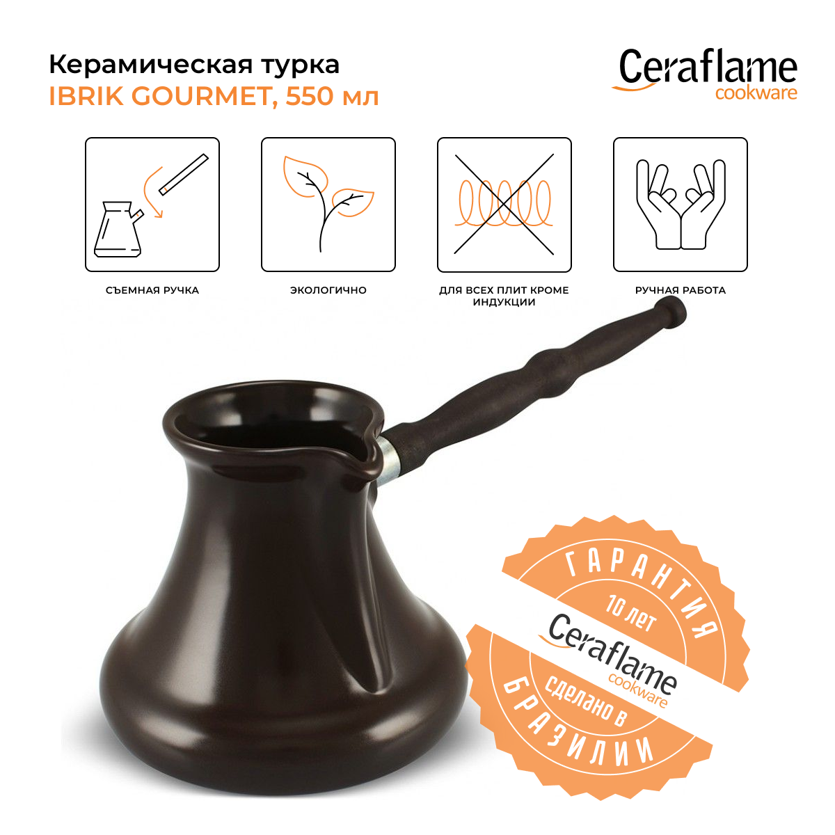 Турка Ibriks Gourmet, объем 550 мл, материал керамика, цвет черный, Ceraflame, Бразилия, D9631