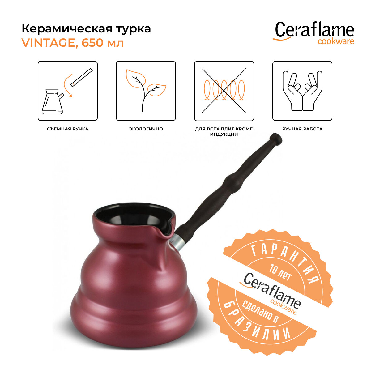 Турка керамическая Ceraflame Vintage 650 мл, цвет красный