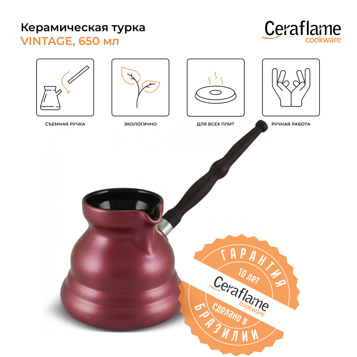 Турка керамическая Ceraflame Vintage с индукционным покрытием 650 мл, цвет красный