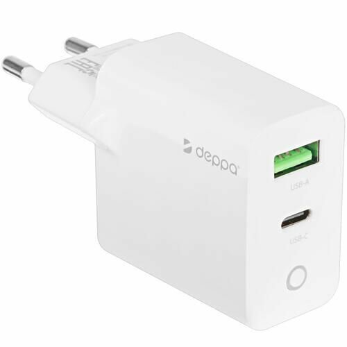 Устройство зарядное сетевое DEPPA USB-C+USB A, PD 3.0, QC 3.0, 20W, белый, Арт. 11398