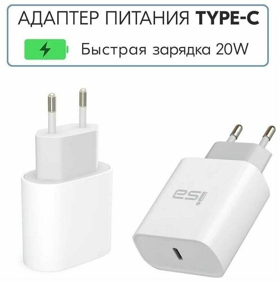 Блок зарядки Type-C, сетевое зарядное устройство PD 20W, зарядник адаптер с быстрой зарядкой для айфон, зарядка USB-C айфоновский ( белый )