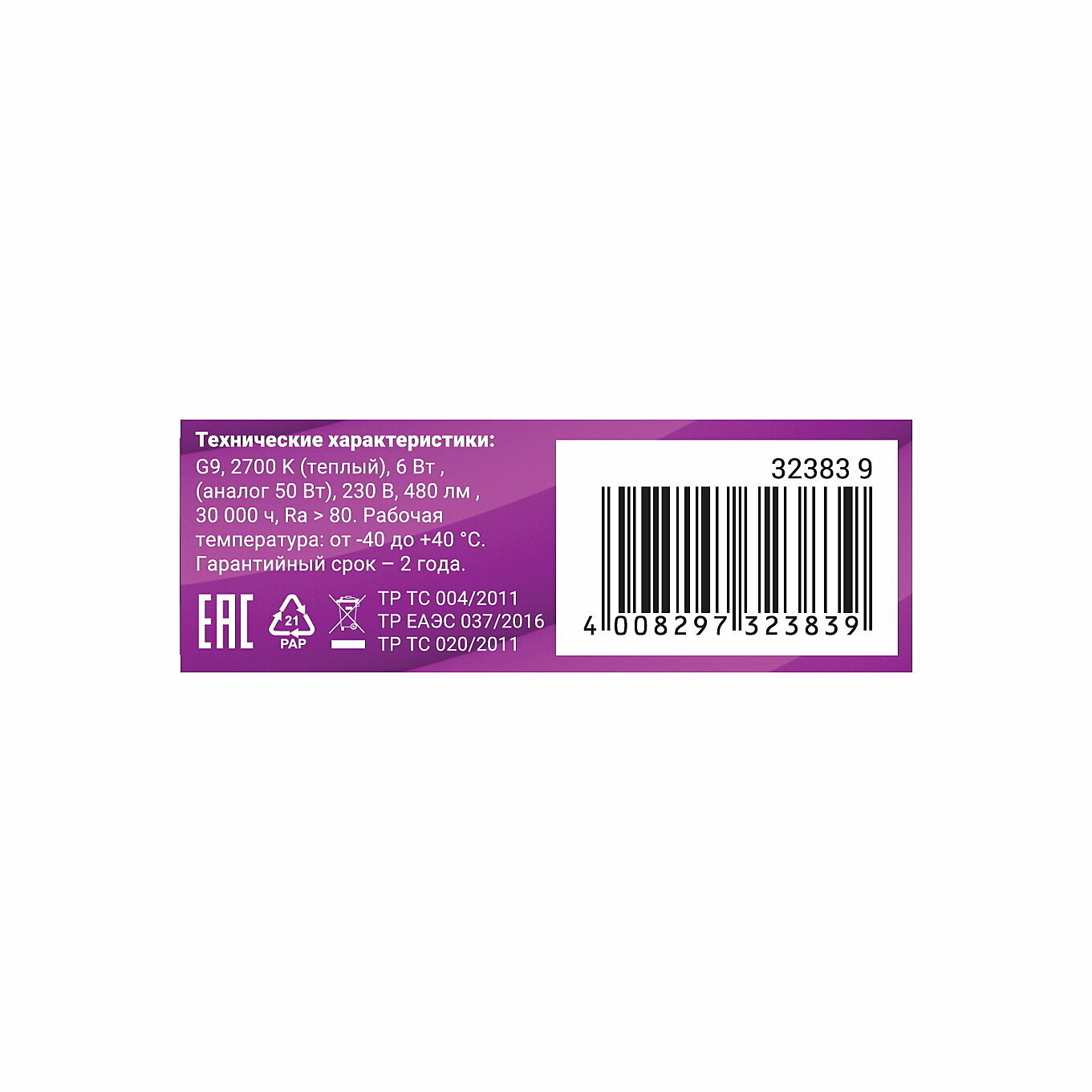 Лампа светодиодная REV G9 6 Вт 2700К теплый свет 180-240 В капсула (32383 9) интересное: