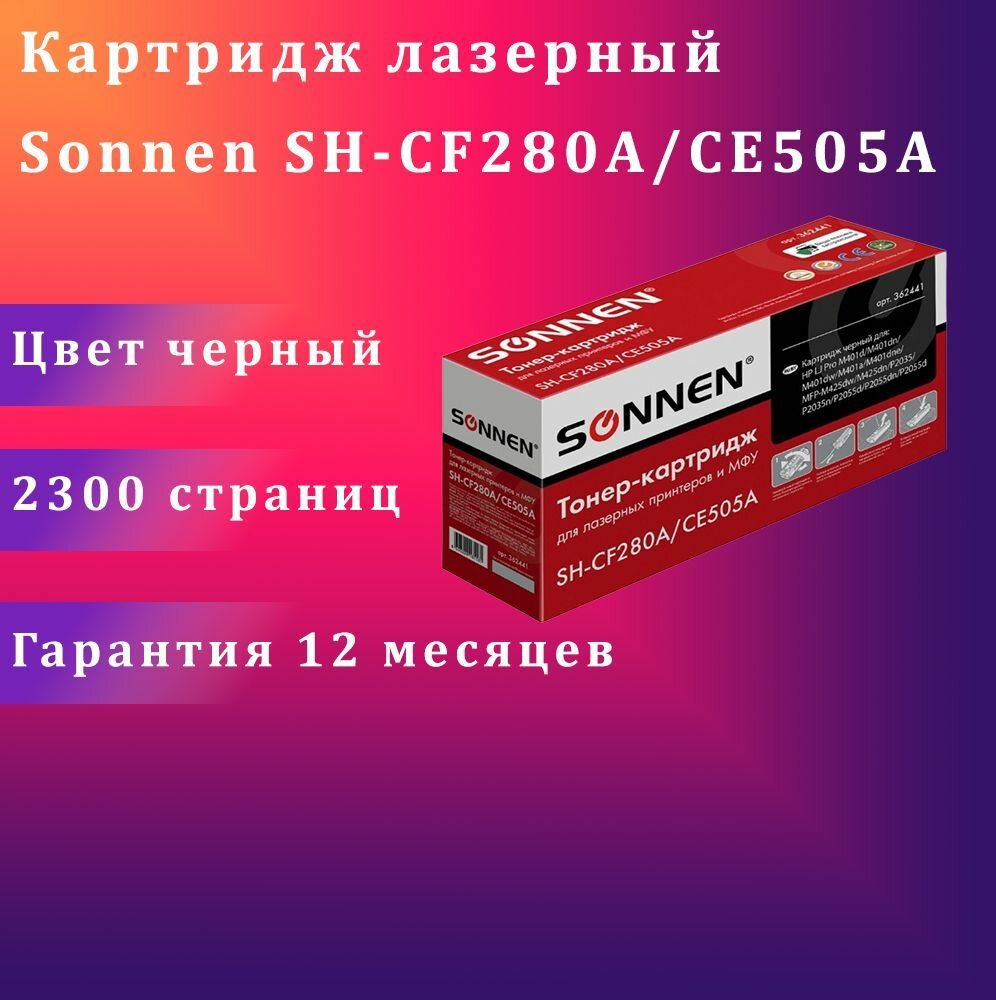 Картридж лазерный SONNEN (SH-CF280A/CE505A) для HP LJ M401/425/P2035/2055, высшее качество, ресурс 2300 стр., 362441 В комплекте: 1шт.
