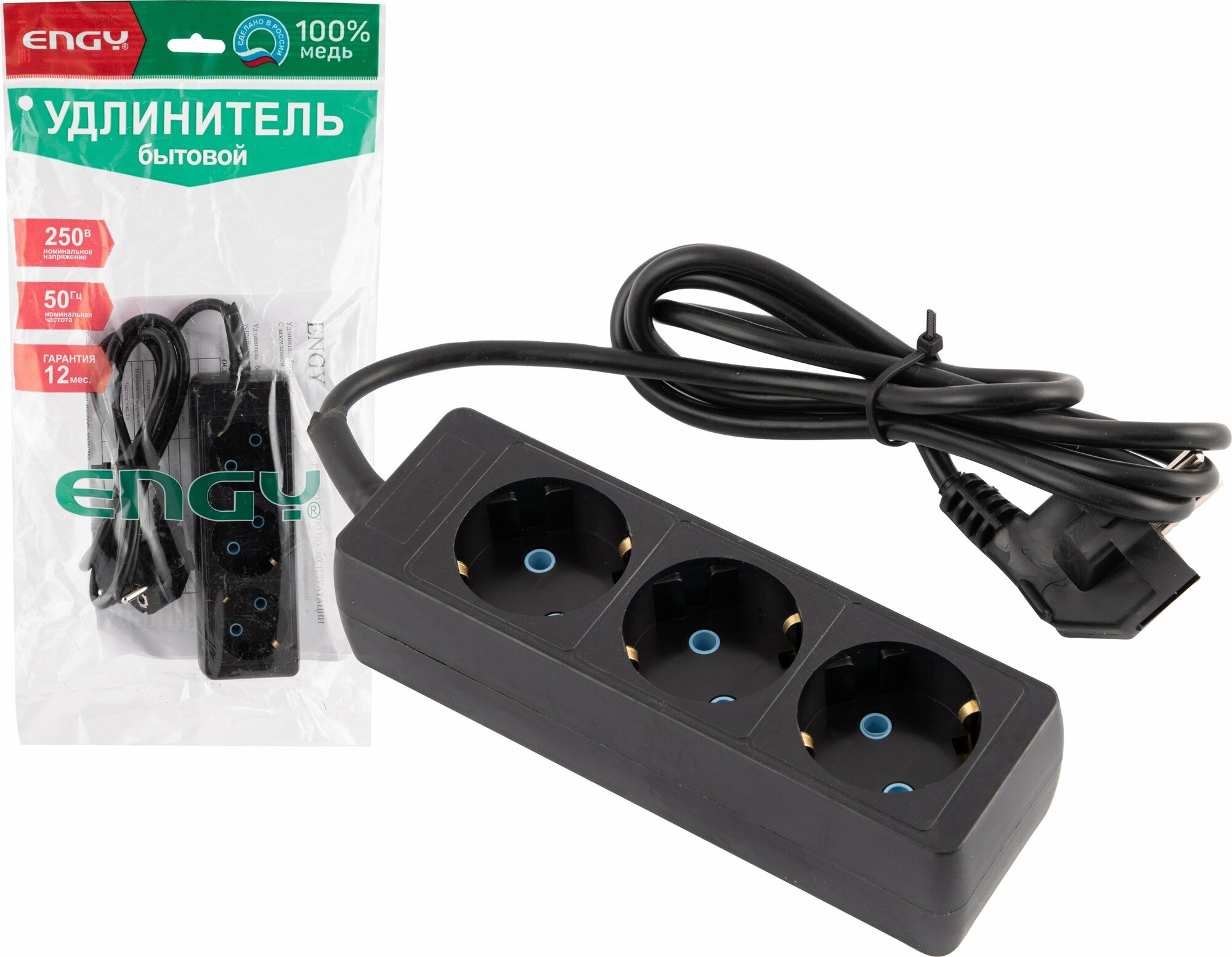 Удлинитель ENGY Гранд 1,7м 3 розетки с заземлением (ПВС 3*0,75) 186736 черный