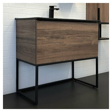 Купить Тумба с раковиной в ванную 90 COMFORTY (Равенна Лофт-90 дуб темно коричневый + раковина черная 90E)