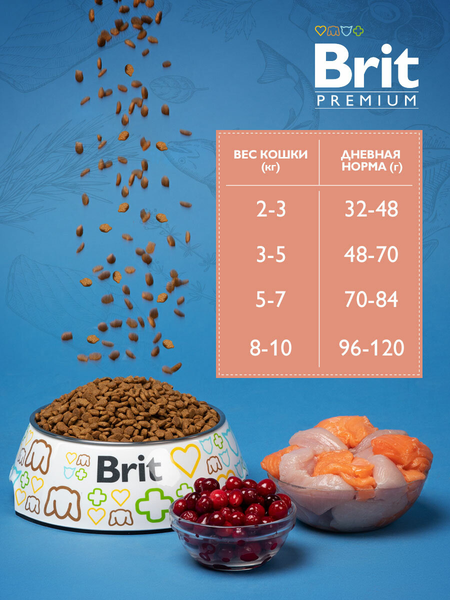 Корм для кошек сухой Брит Premium Cat Sterilised для стерилизованных взрослых животных гранулы с лососем и курицей 2кг / кошачья еда для ежедневного